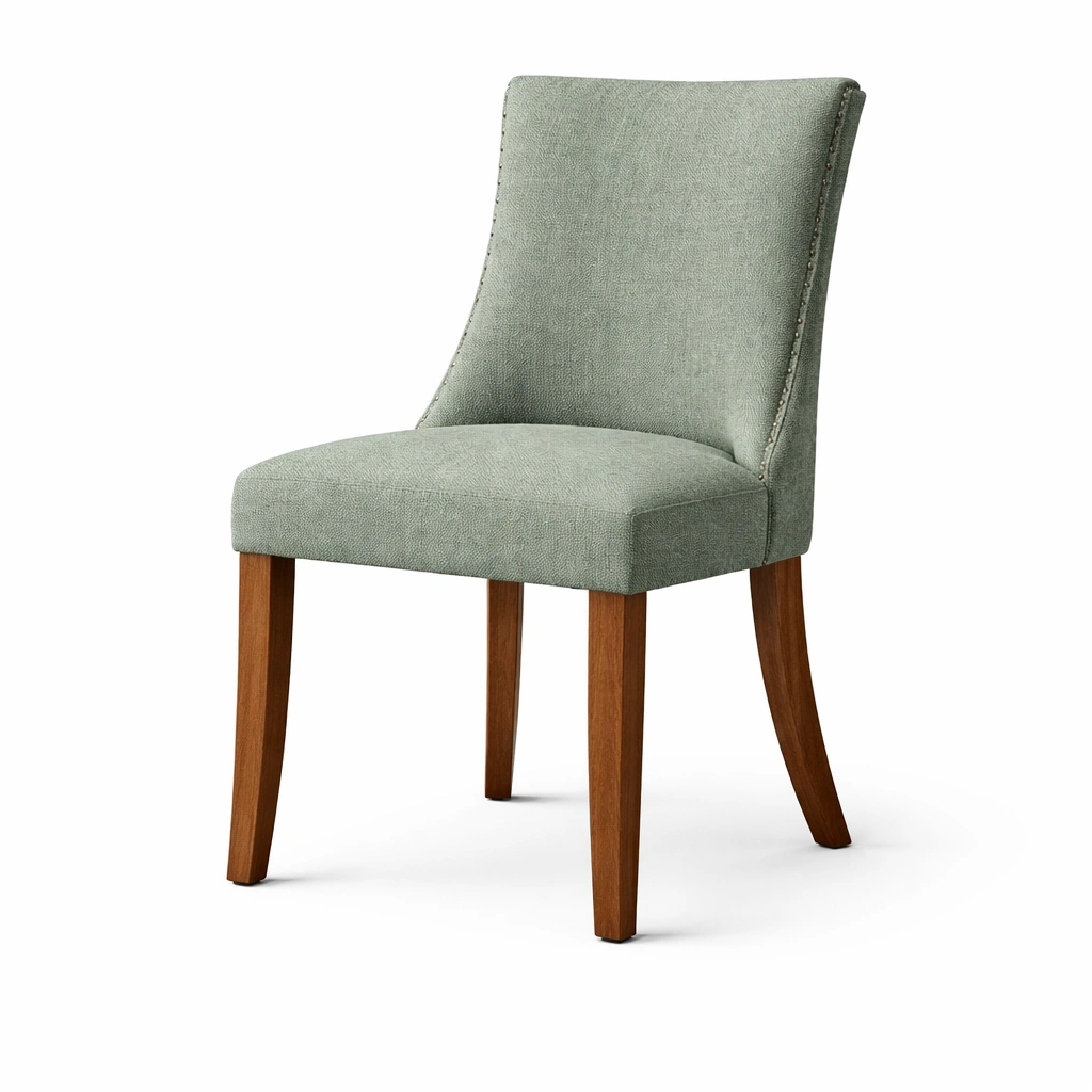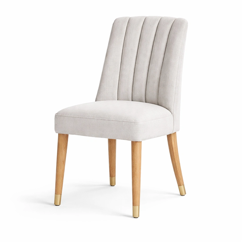 Sillas de comedor de madera de roble y tela de poliéster gris claro con detalles dorados