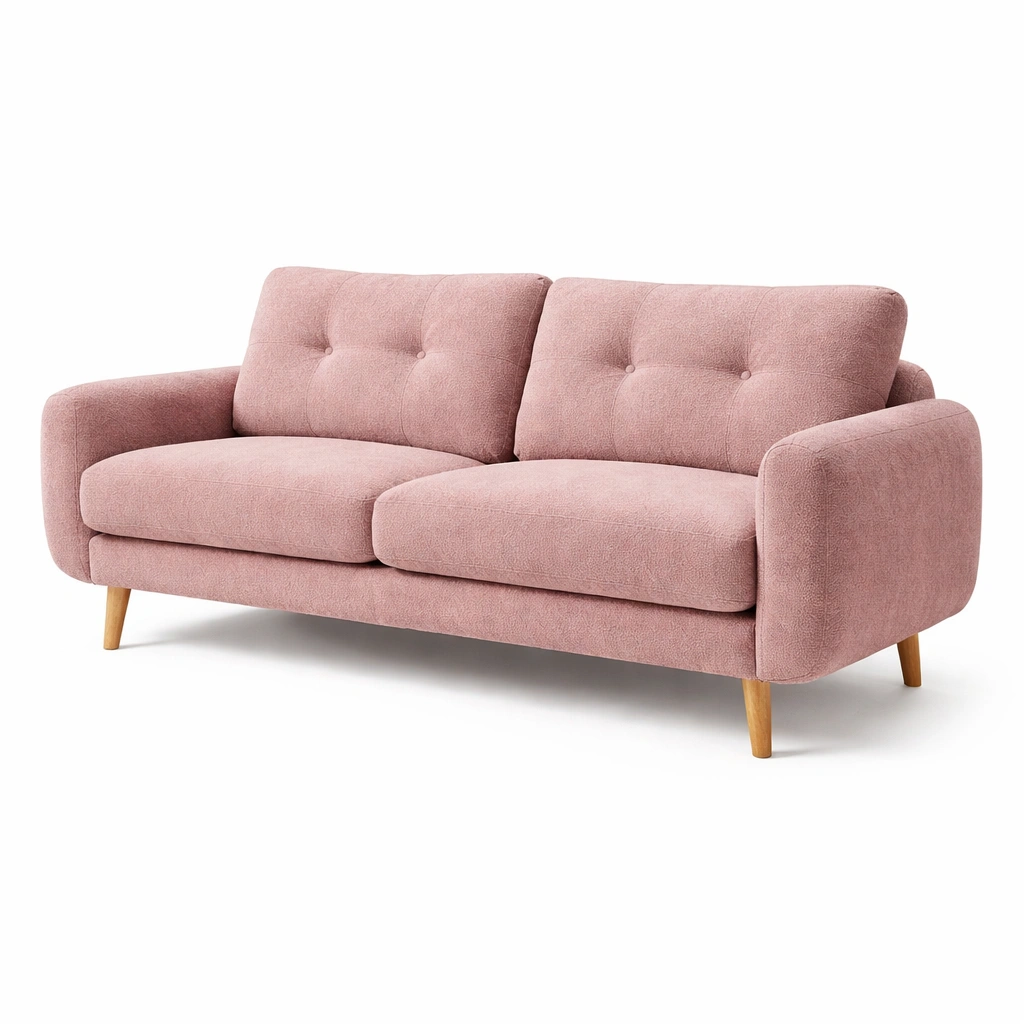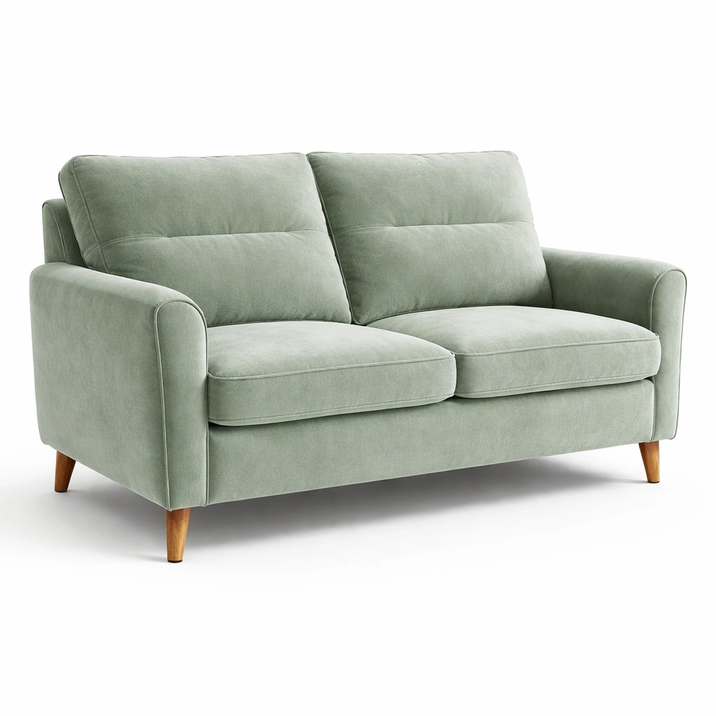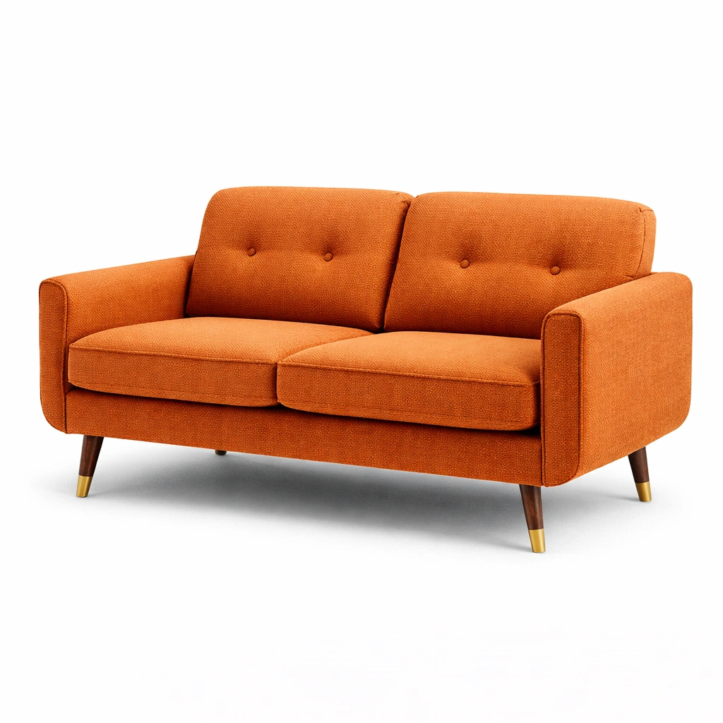 Sofá de dos plazas de tela de poliéster y patas de madera