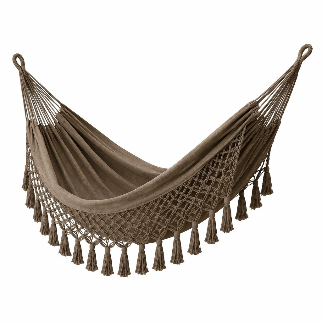Hamaca de algodón marrón con borlas