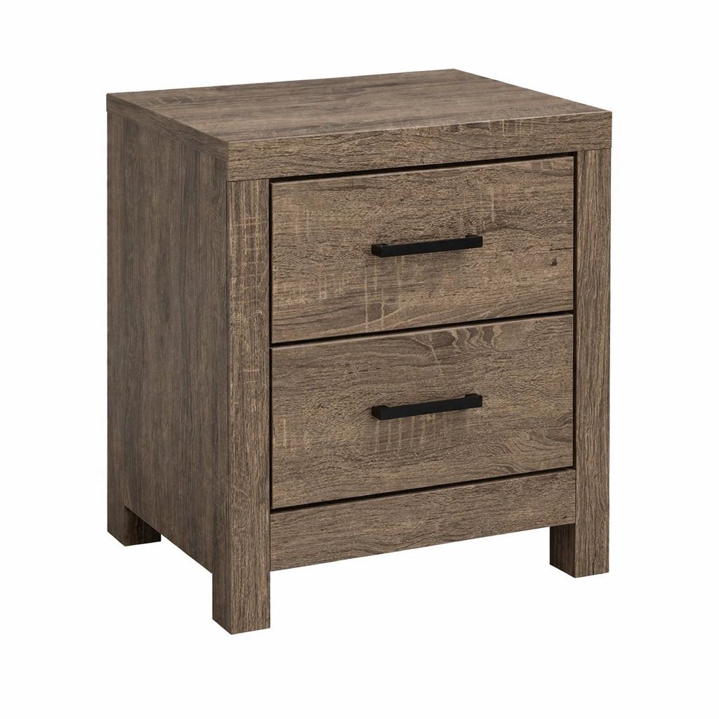 Mesita de noche de madera con 2 cajones